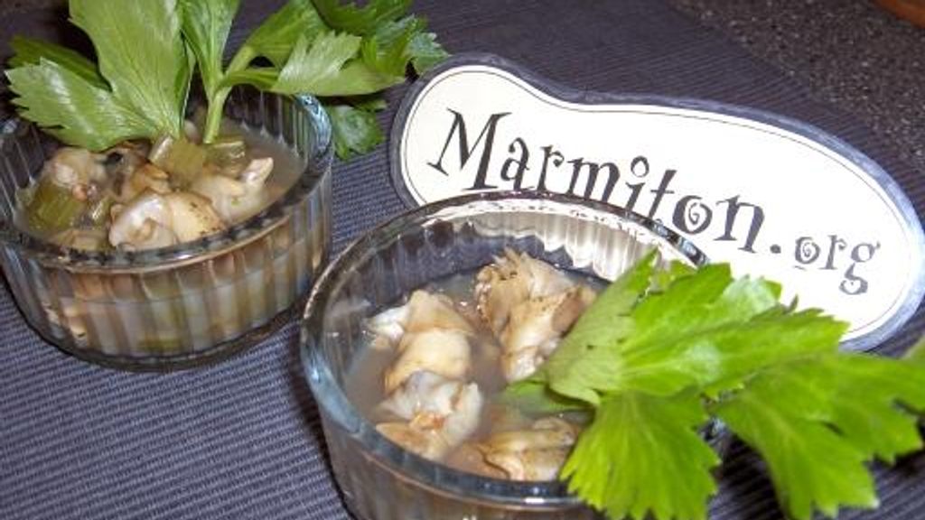 escargot, céleri, feuille de laurier, poivre blanc, poivre blanc, piment