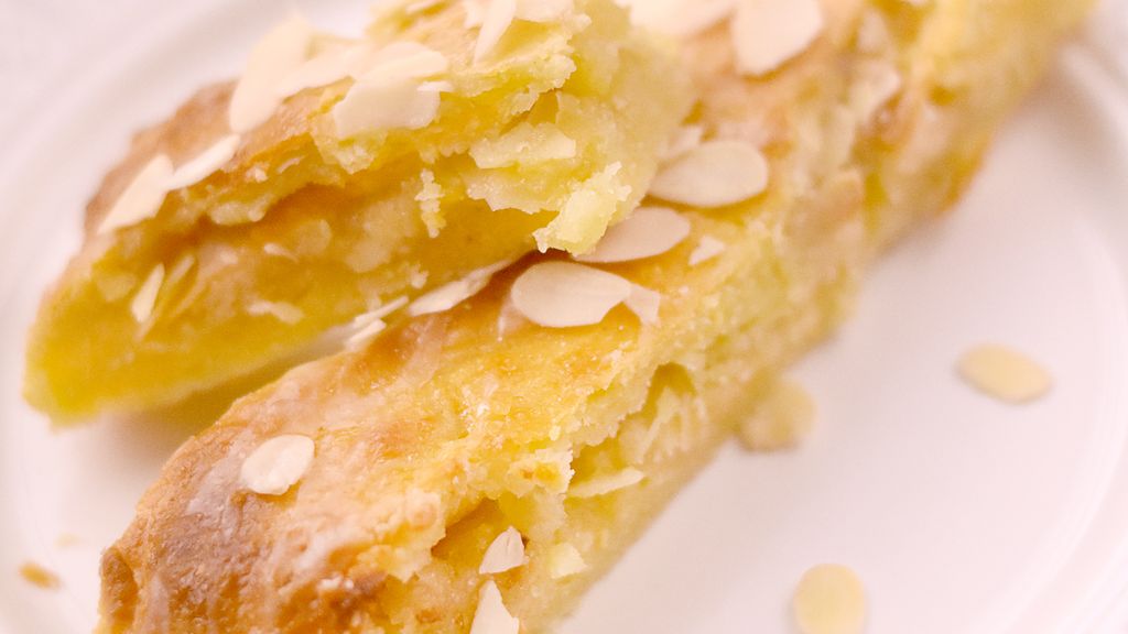 farine, sucre glace, levure, sel, beurre, fromage frais, lait, amandes, oeuf, beurre, sucre, sel, amandes, oeuf, pâte d'amande, amandes effilées,…
