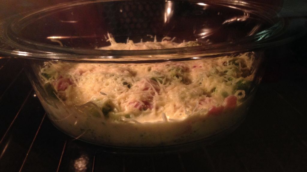 courgette, oignon, poivron rouge, crème liquide, oeuf, gruyère râpé, chèvre, huile d'olive, sel, origan
