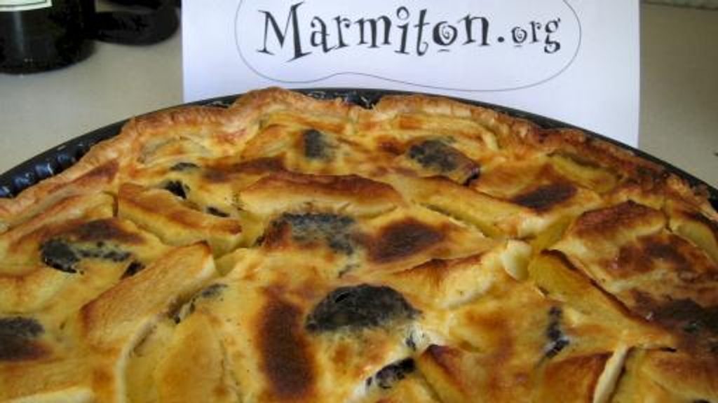 pâte feuilletée, pomme, boudin noir, lait, oeuf, crème fraîche, huile, muscade, poivre, sel