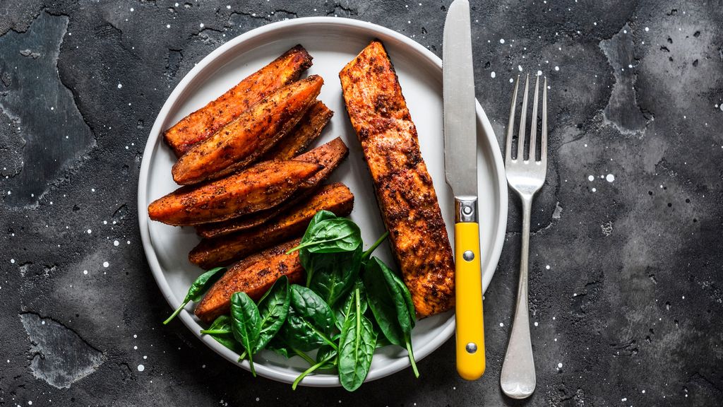 Pavé de saumon et frites de patates douces : cette preparation culinaire met en valeur des ingredients de qualite.