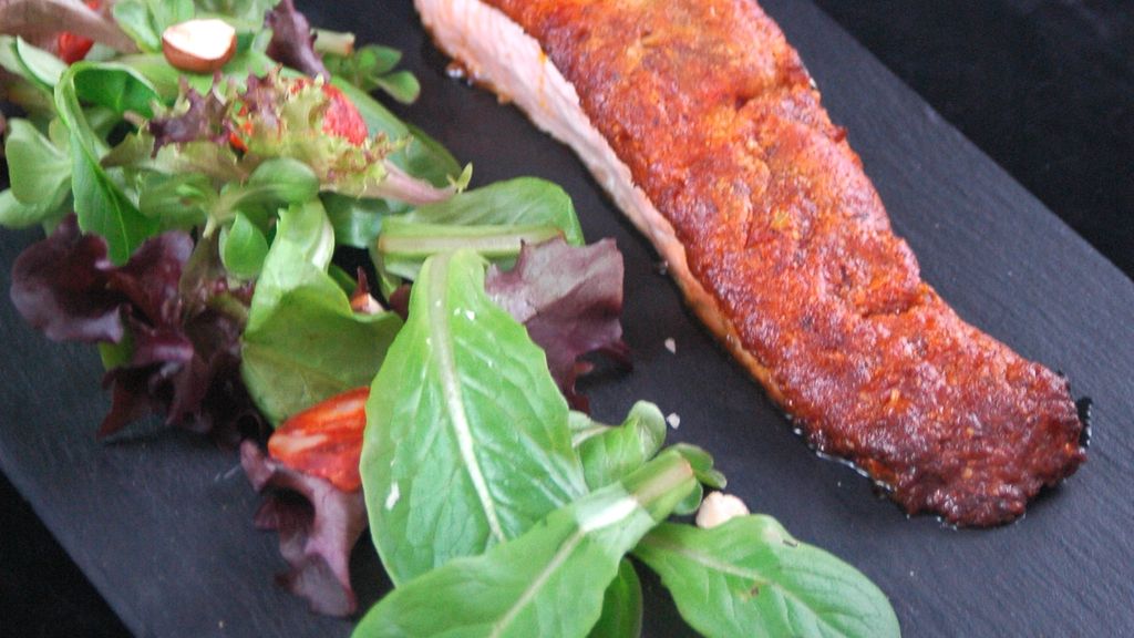 Saumon en croûte de chorizo, parmesan & noisettes : cette preparation culinaire met en valeur des ingredients de qualite.
