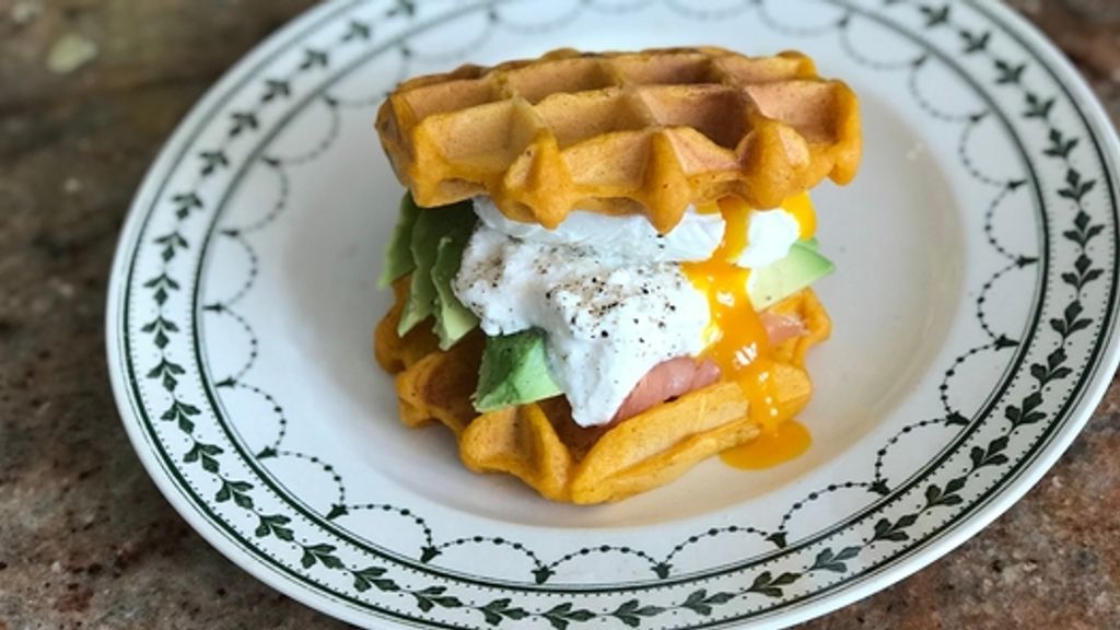 Burger de gaufres de patate douce : cette preparation culinaire met en valeur des ingredients de qualite.