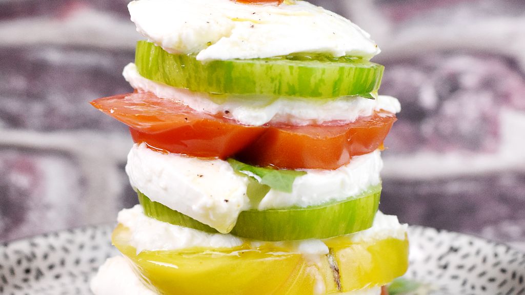 Tomates mozzarella multicolores façon burger : une recette gourmande et raffinee qui seduit par ses saveur authentiques.