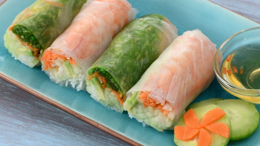 Rouleaux de printemps au saumon : cette preparation culinaire met en valeur des ingredients de qualite.