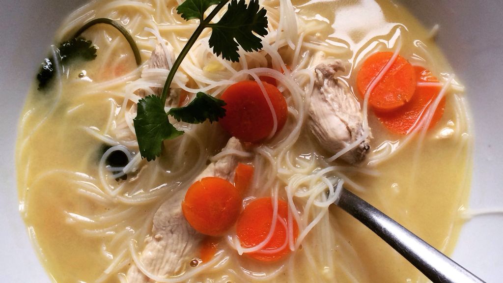 Soupe thaïlandaise au poulet et coco facile : cette recette de plat principal savoureuse et reconfortante plaira a toute la…