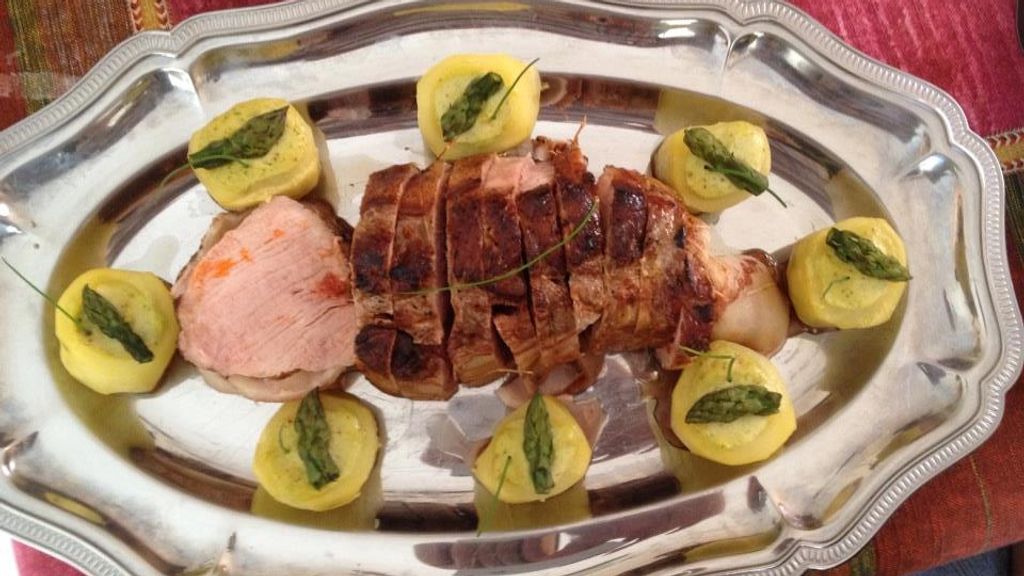 Rôti de veau au chorizo et makis de pommes de terre au velouté d'asperges vertes : une recette gourmande et…