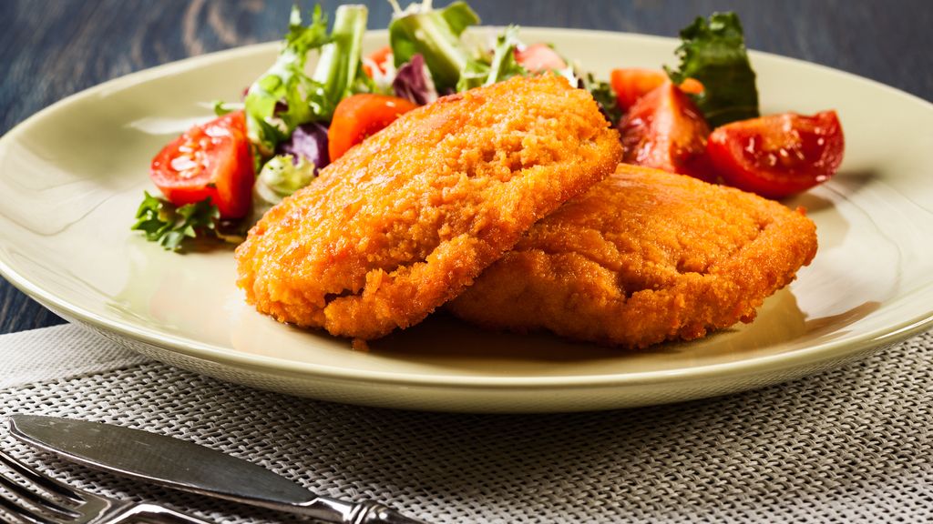 Escalopes de dinde panées, jambon cru et aubergines : cette preparation culinaire met en valeur des ingredients de qualite.