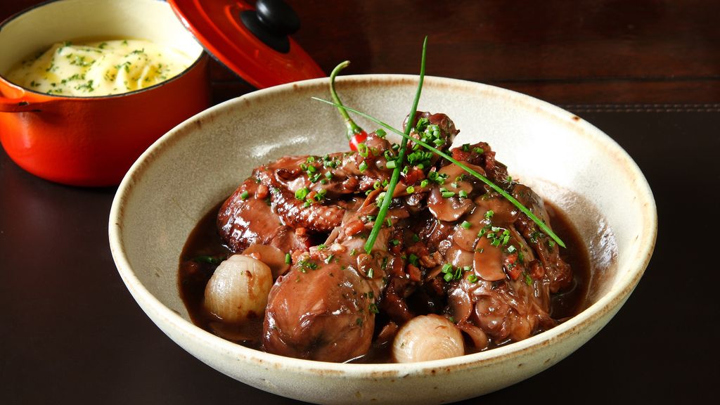 Coq au vin maison au cooking chef : cette preparation culinaire met en valeur des ingredients de qualite.