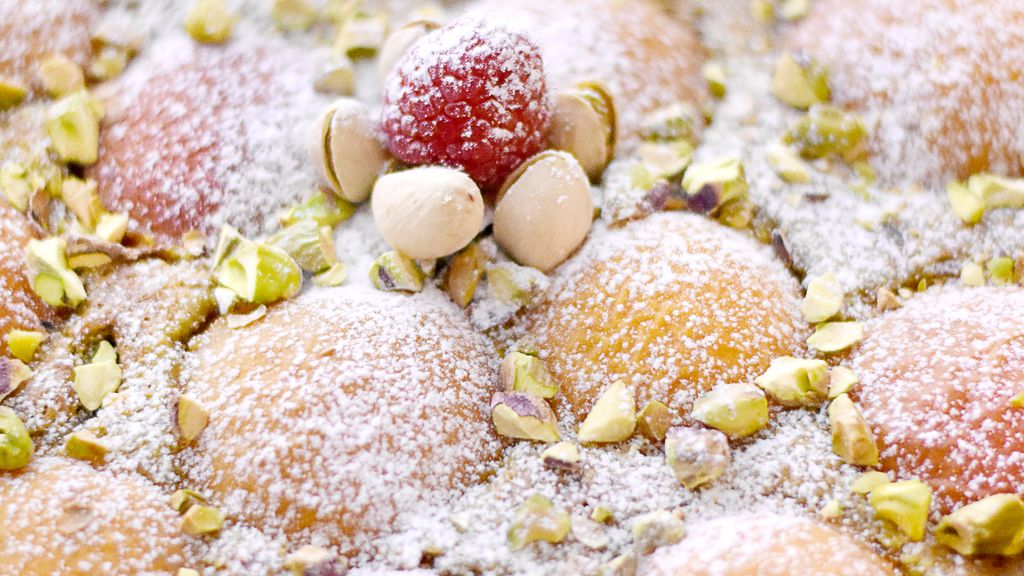 Gateau roulé à la pistache au coeur cerise : cette preparation culinaire met en valeur des ingredients de qualite.