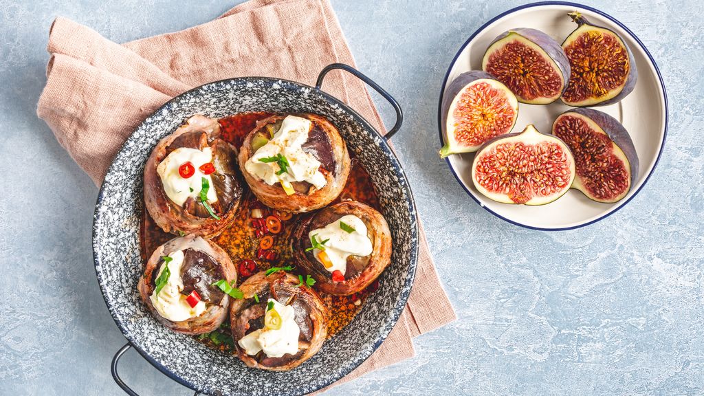 Figues rôties au lard grillé et fromage de chèvre : cette preparation culinaire met en valeur des ingredients de qualite.