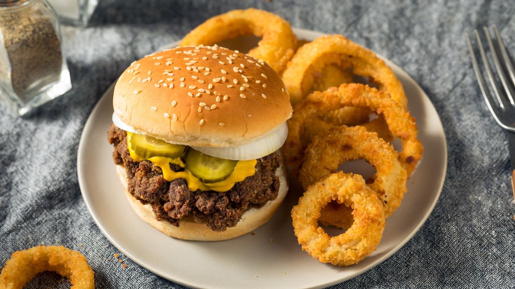 Burger de bœuf maison et rondelles d'oignons croustillantes : une recette gourmande et raffinee qui seduit par ses saveur authentiques.