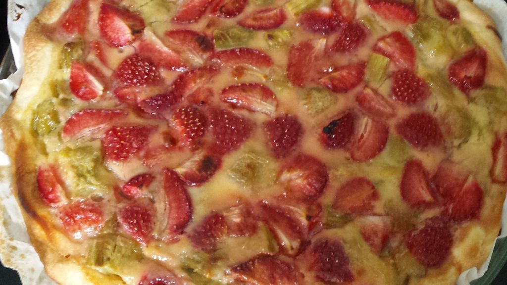 Tarte rhubarbe, fraises, chocolat blanc : cette preparation culinaire met en valeur des ingredients de qualite.
