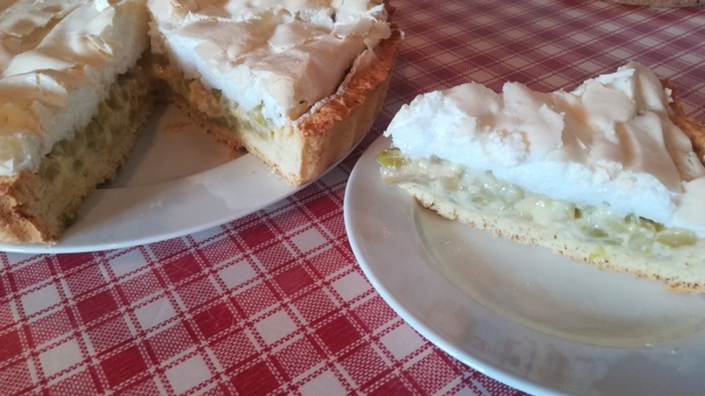 Tarte rhubarbe meringuée à l'alsacienne : cette preparation culinaire met en valeur des ingredients de qualite.