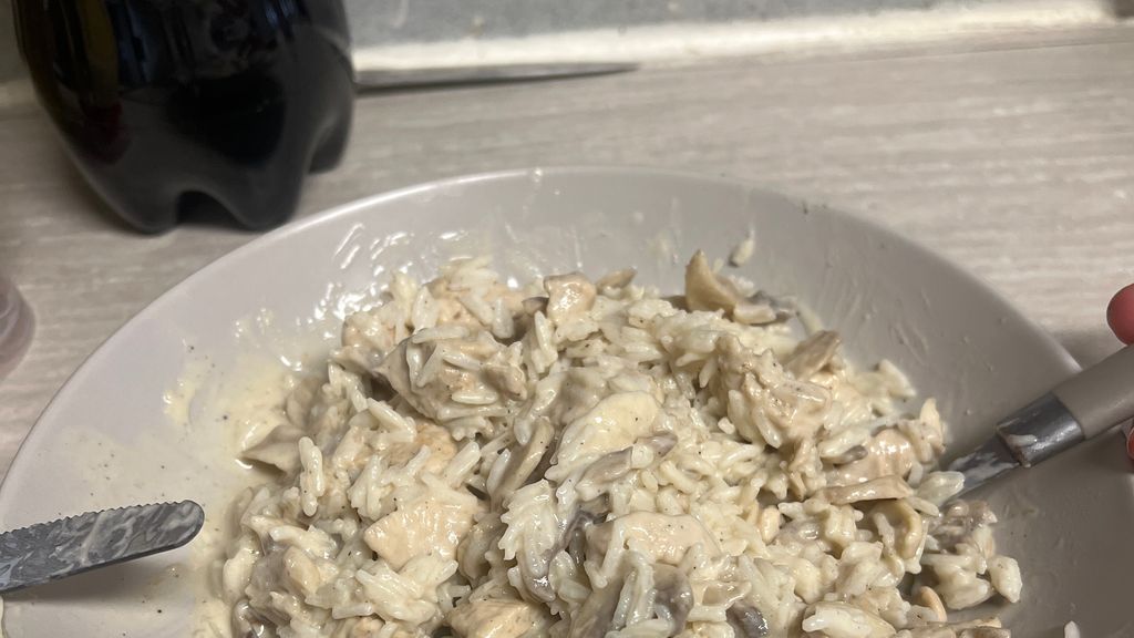 Riz au poulet avec sauce aux champignons