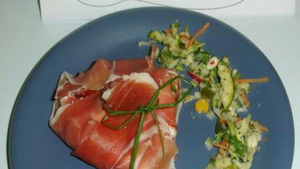 fromage de chèvre, jambon cru, ciboulette, crème fraîche, poivre, sel