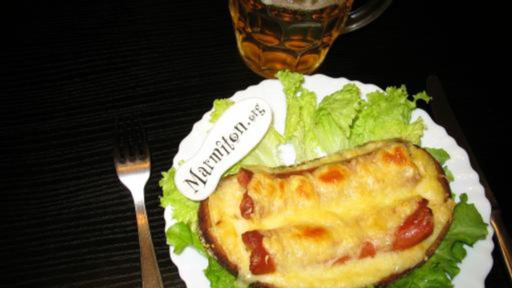 pain de seigle, saucisse de Strasbourg, munster, gruyère râpé, moutarde, cumin