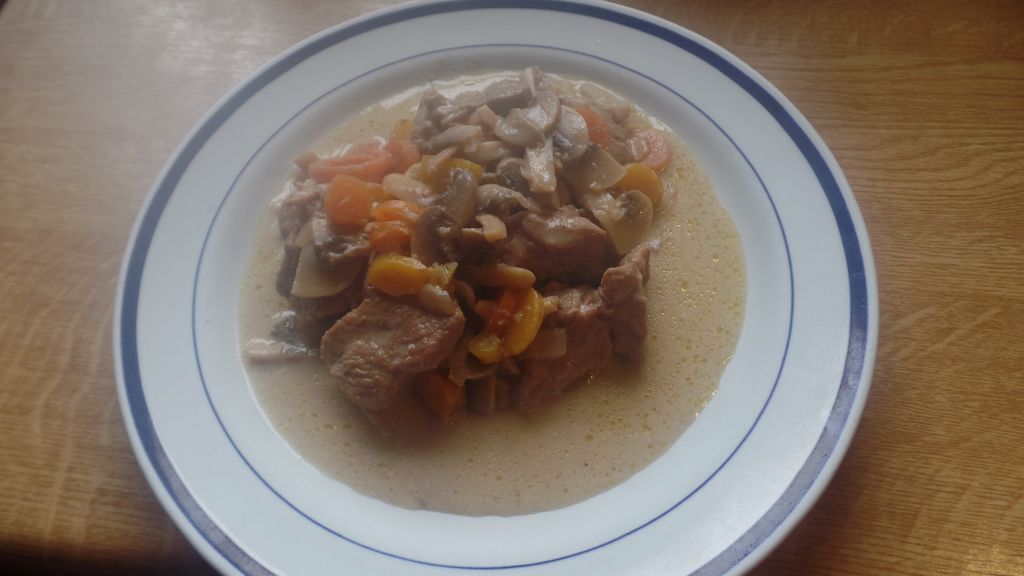 cuisse de poulet, carotte, oignon, beurre, farine, champignon, ail, jaune d'oeuf, bouquet garni, citron, noix de muscade moulue, sel et…
