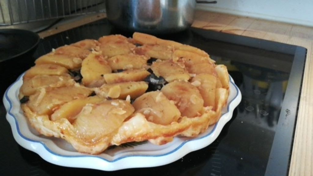 Tarte tatin au boudin antillais et aux pommes : cette preparation culinaire met en valeur des ingredients de qualite.