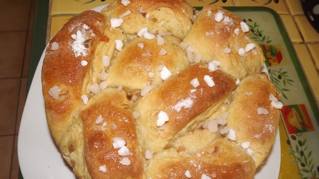 Brioche tradition à l'ancienne aux fruits confits au four : cette preparation culinaire met en valeur des ingredients de qualite.