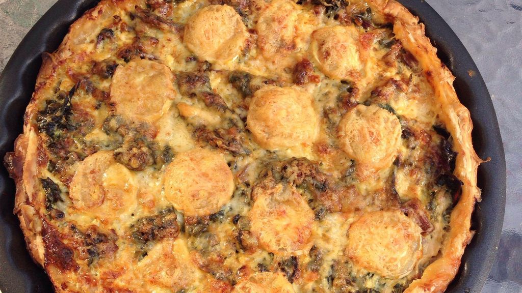 Tarte aux fanes de radis et au chèvre : cette preparation culinaire met en valeur des ingredients de qualite.