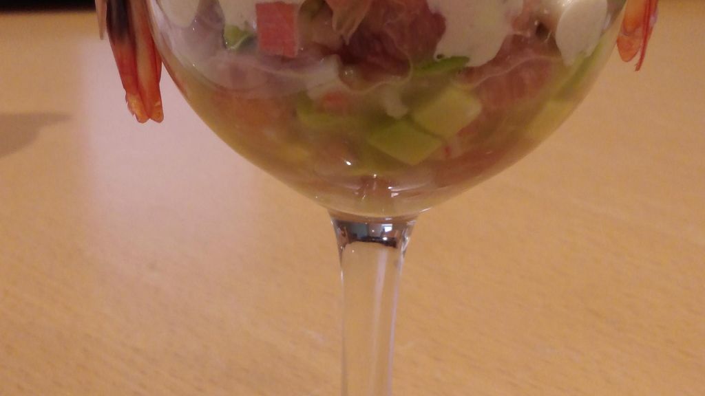 Verrines crevettes, avocat, pamplemousse rose : cette preparation culinaire met en valeur des ingredients de qualite.