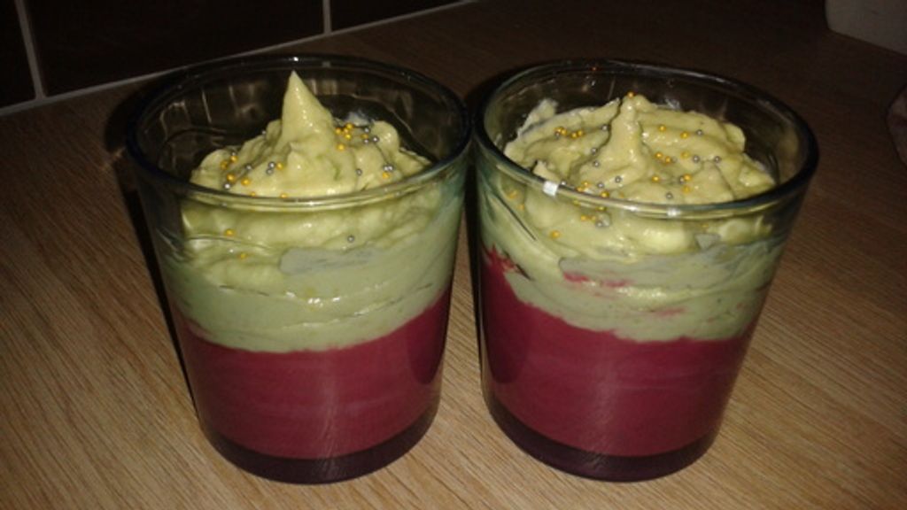 Mousse d'avocat et crème de betterave : cette preparation culinaire met en valeur des ingredients de qualite.