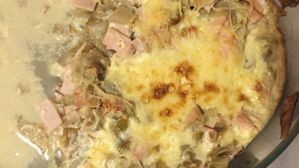 endive, dés de jambon, oignon, crème fraîche, oeuf, sel, poivre, beurre