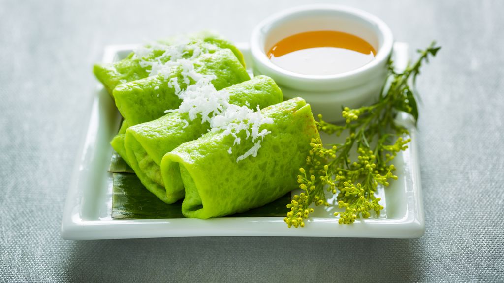 Dadar - crêpes de coco au pandan (indonésie) : une recette gourmande et raffinee qui seduit par ses saveur authentiques.