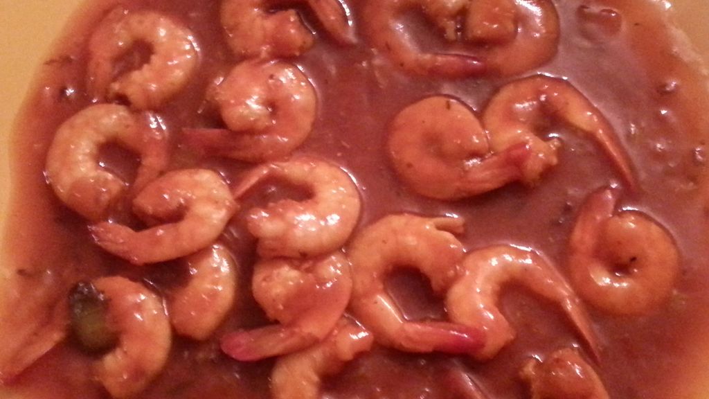 gambas, cognac, huile d'olive, crème fraîche, coulis de tomate, vin blanc, échalote, oignon, ail, persil