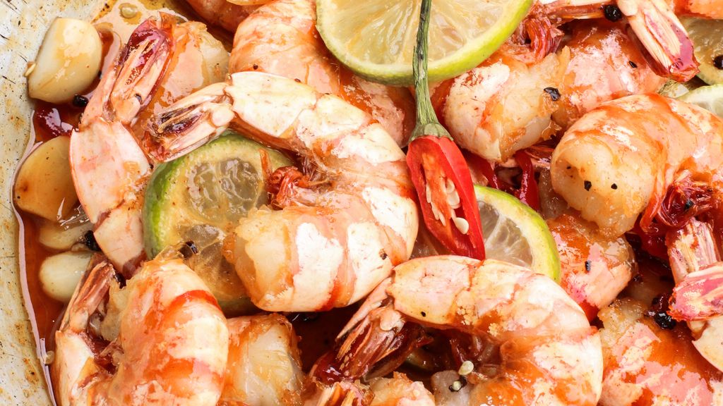 Délice de crevettes flambées au whisky : cette preparation culinaire met en valeur des ingredients de qualite.
