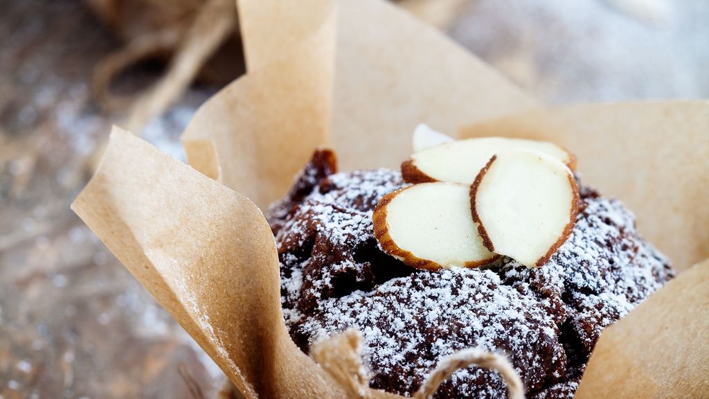 chocolat, sucre en poudre, beurre, amandes, oeuf