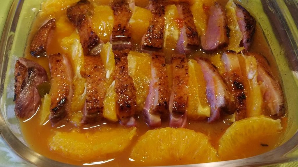 Magret de Canard, orange, sucre, sel, ketchup, cointreau, vinaigre d'alcool