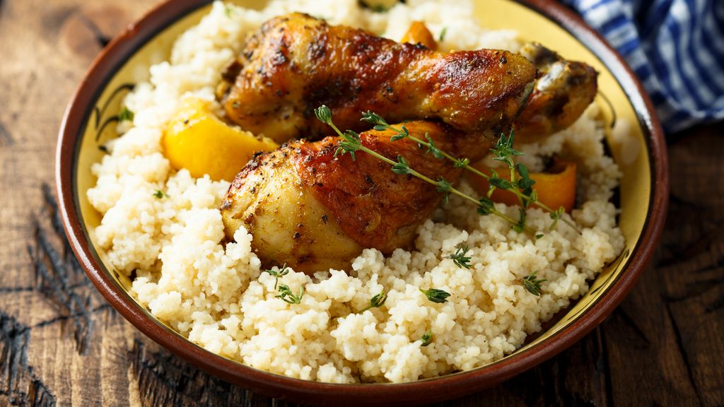 cuisse de poulet, huile d'olive, vinaigre de xérès, bouillon de volaille, thym, feuille de laurier, romarin, ail, vin blanc, sel,…