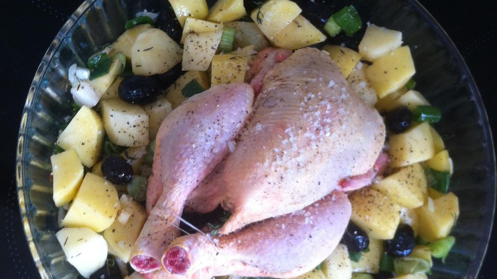 Poulet rôti aux olives et ses pommes de terre : cette preparation culinaire met en valeur des ingredients de qualite.