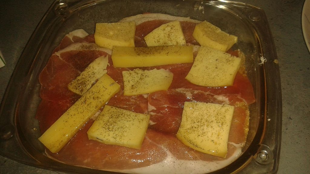 escalope de veau, jambon fumé, beaufort, farine, oeuf, chapelure, huile, poivre