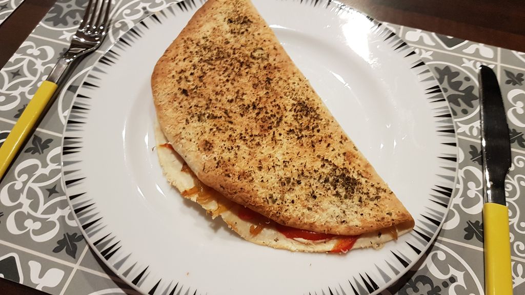 oignon, poivron rouge, tortilla, Philadelphia, origan, parmesan, huile d'olive, sel et poivre
