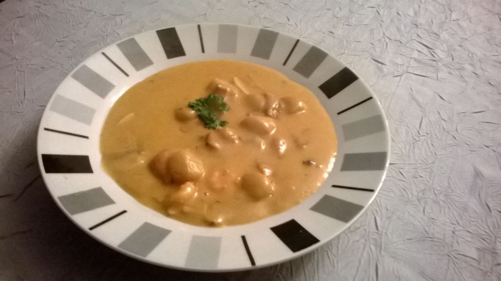 noix de saint-jacques, échalote, farine, champignon, vin blanc sec, court-bouillon, lait, crevettes, beurre, sel, poivre