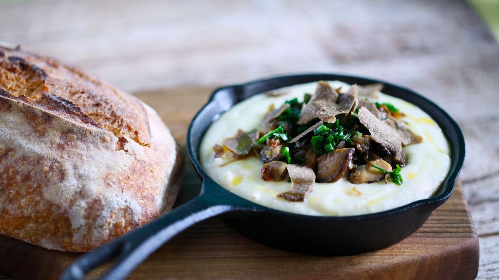 pied-de-mouton, beaufort, comté, emmental, ail, échalote, vin blanc, pain de campagne, poivre, muscade