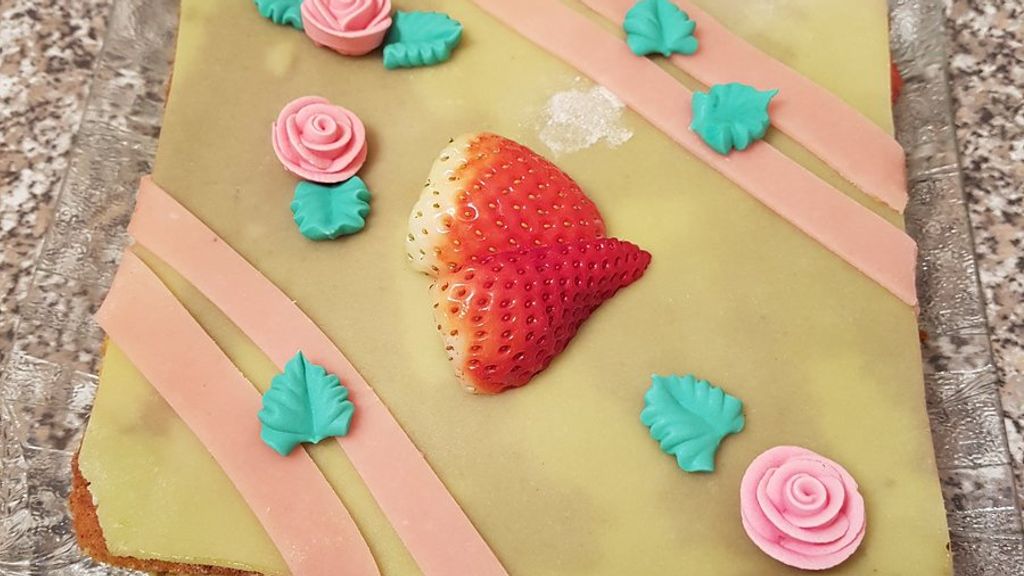 Fraisier et son décor : cette preparation culinaire met en valeur des ingredients de qualite.