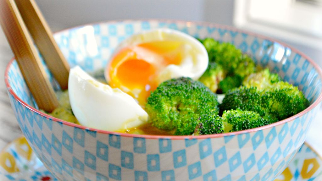 oeuf, brocoli, polenta, épinards frais, sésame, poivre, sel