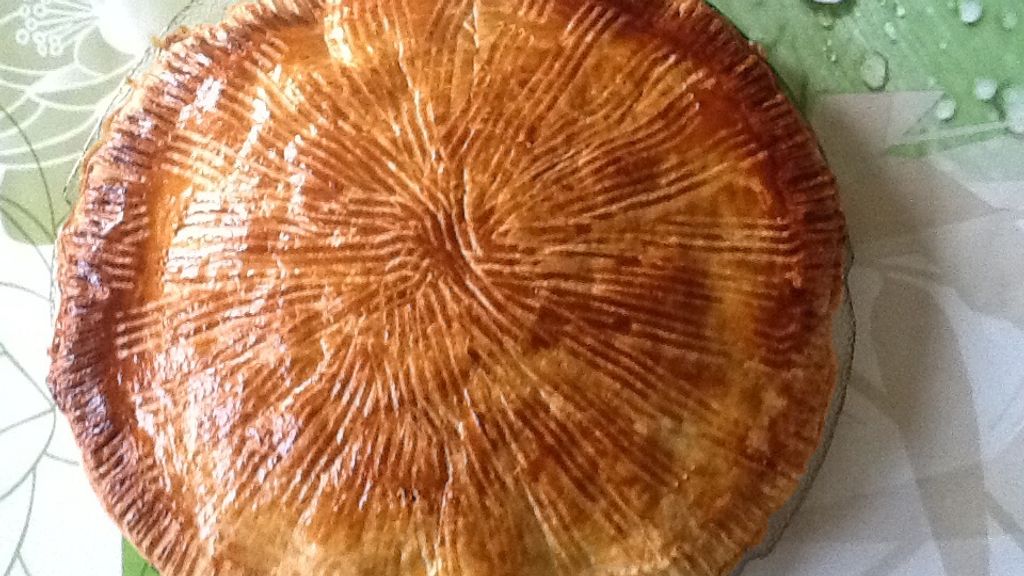 pâte feuilletée, amandes en poudre, oeuf, sucre, beurre tendre, extrait d'amande amère, jaune d'oeuf