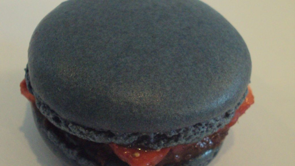 oeuf, sucre semoule, sucre, sucre glace, amandes, eau, vin rouge, fraises, citron vert, chocolat noir, colorant, colorant