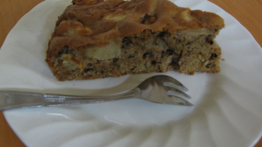 farine d'épeautre, sucre roux, oeuf, sucre vanillé, huile, bicarbonate, pomme, noix