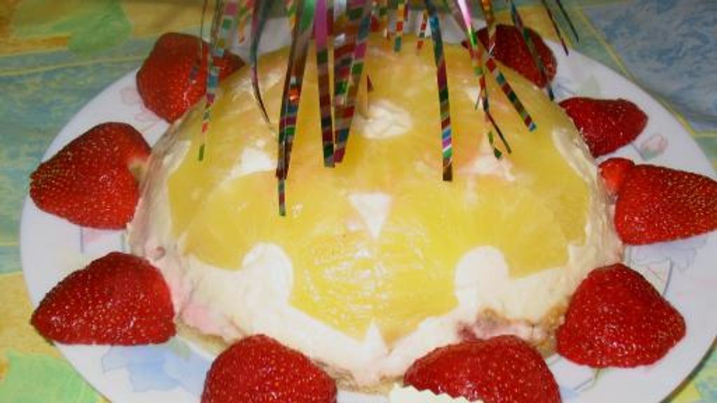 oeuf, sucre, farine, fécule, levure chimique, confiture de fraises, ananas, fromage blanc, crème chantilly, arôme naturel d'orange, crème fraîche, fraises,…