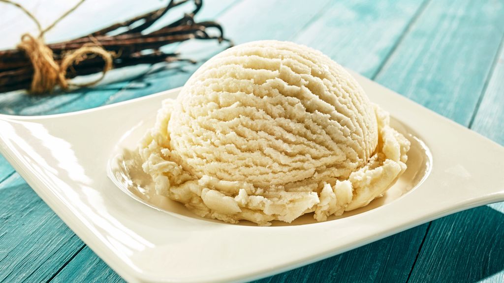 Glace à la vanille aux éclats de chocolat et aux amandes : cette preparation culinaire met en valeur des ingredients…
