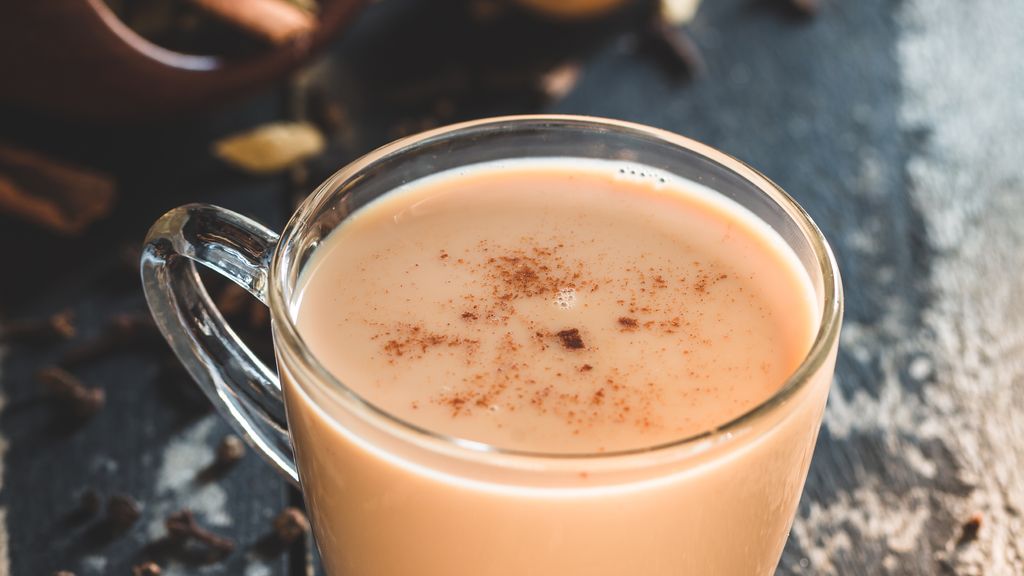 eau, sucre, thé, clou de girofle, cannelle, cardamome, lait