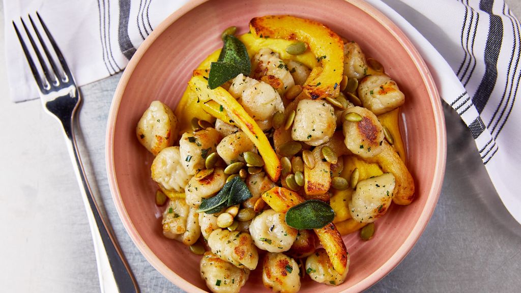 gnocchi, butternut, huile d'olive, paprika, graines de courge, sauge, sel et poivre
