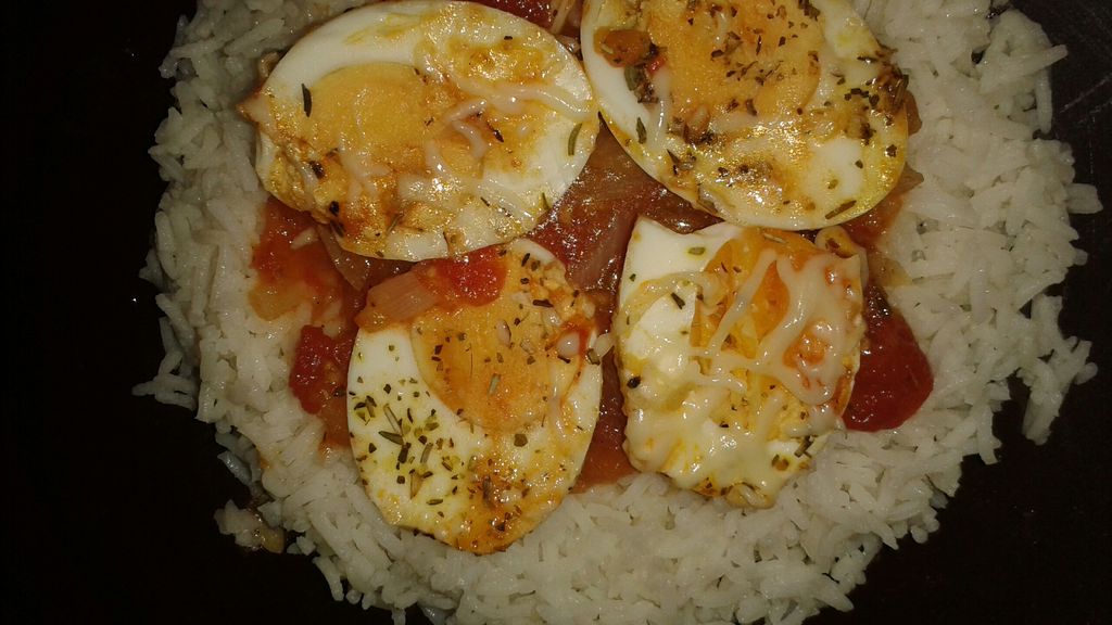 oeuf, tomates pelées, tomate, oignon, ail, thym, piment, huile d'olive, sel
