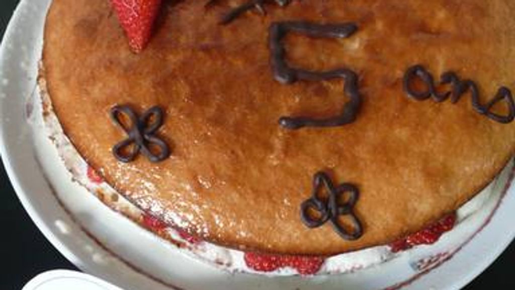 oeuf, farine, sucre, levure, crème liquide, sucre, fixe chantilly, fraises, nappage, fraises